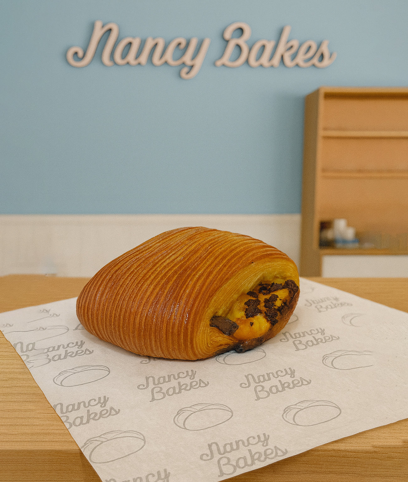 Soft, buttery pastry layered with silky vanilla custard and dotted with rich chocolate chips. Golden, creamy, and chocolate-studded — the perfect pick-me-up any time of day. 🥐🍫✨